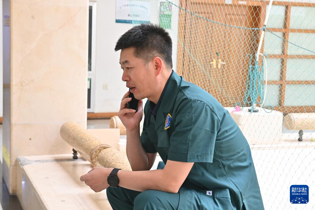 5月8日,邵龙在午休期间通过电话了解新入院患者情况。