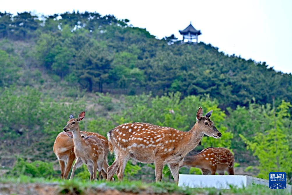 几只梅花鹿在辽宁大连市白云山山体公园游走(5月21日摄)。