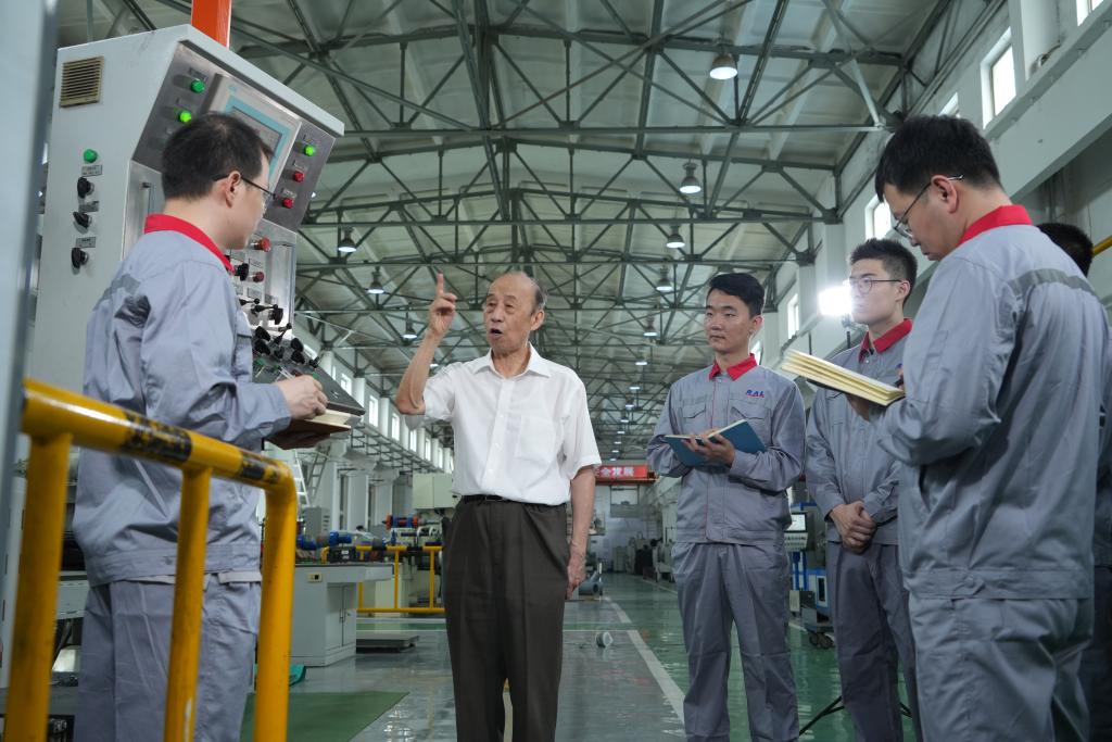 王国栋院士和青年科研工作者在生产一线。(东北大学供图)