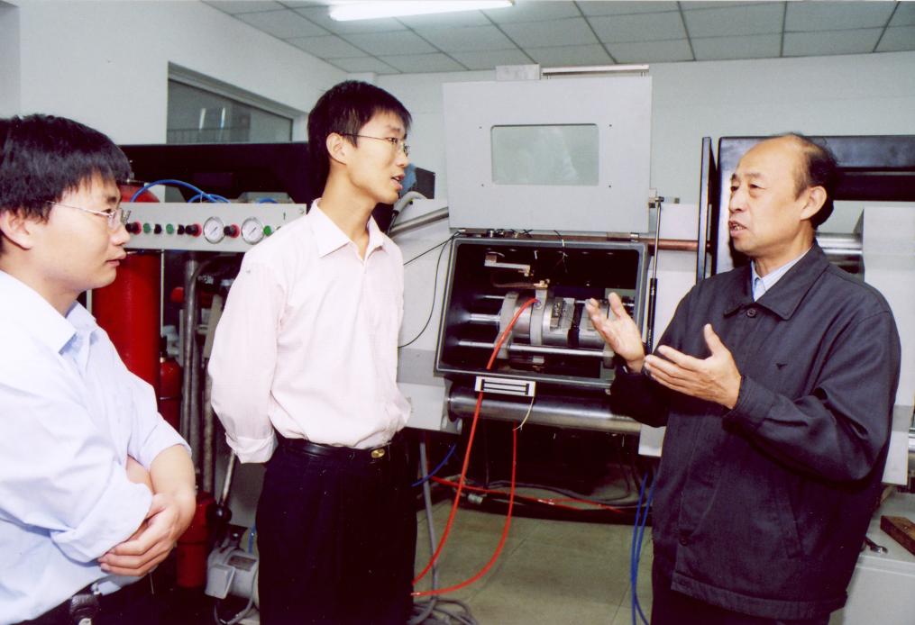王国栋院士和学生在一起讨论科研问题。(东北大学供图)