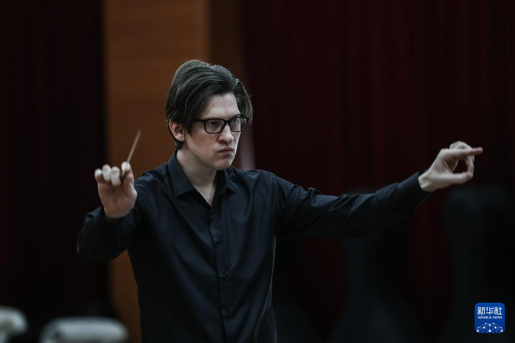 3月31日,来自莫斯科的指挥家安东·托尔别夫指挥辽宁交响乐团演奏《七夕》。 新华社记者 潘昱龙 摄
