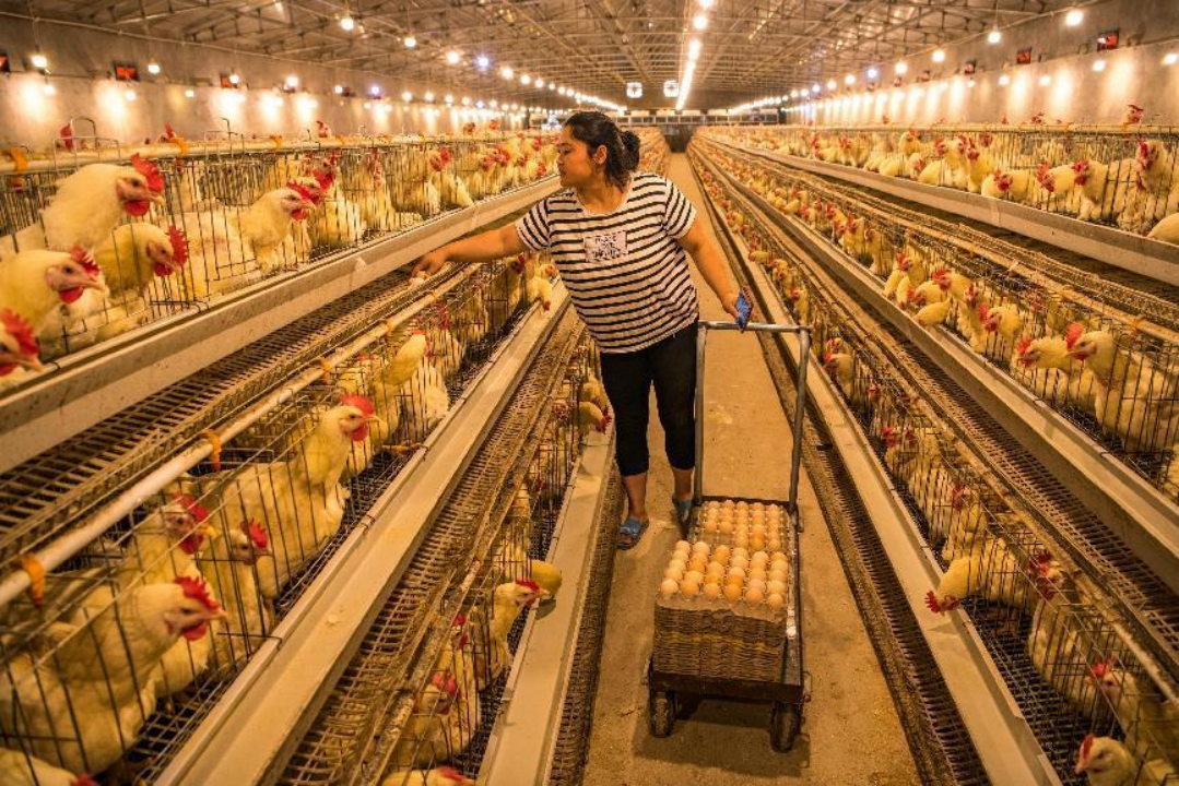 农民在养鸡场收获鸡蛋。新华网发(李永宏摄)