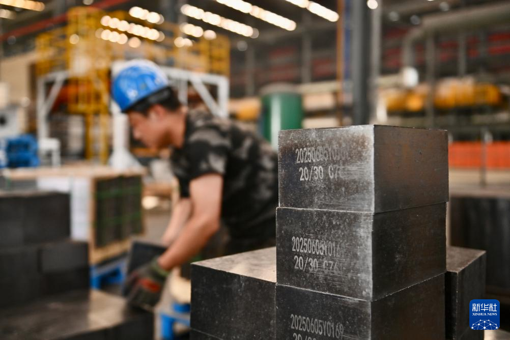 6月6日,工人在海城利尔麦格西塔材料有限公司搬运钢包镁碳砖。近年来,辽宁省海城市的菱镁产业摒弃粗放发展的老路,向集约高效、绿色智能、全产业链方向高质量发展。