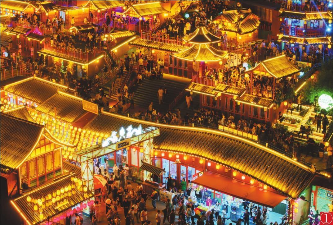 图①:假期,盘锦北旅田园·黑风关古镇日客流量破万,街巷人潮如织。本报特约记者 王克威 摄
