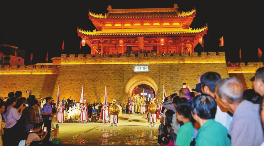 省级旅游休闲街区——利州古城文化旅游风情街夜间表演。