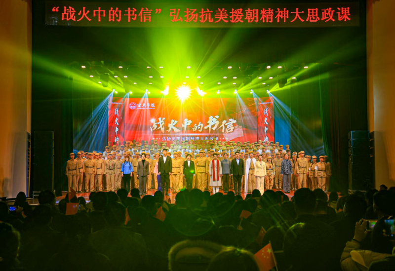 10月25日晚,辽东学院大学生活动中心座无虚席, “战火中的书信”——弘扬抗美援朝精神“大思政课”在这里举行。来自全国各地的专家学者以及辽东学院师生代表800余人一同在这里聆听了这堂课。