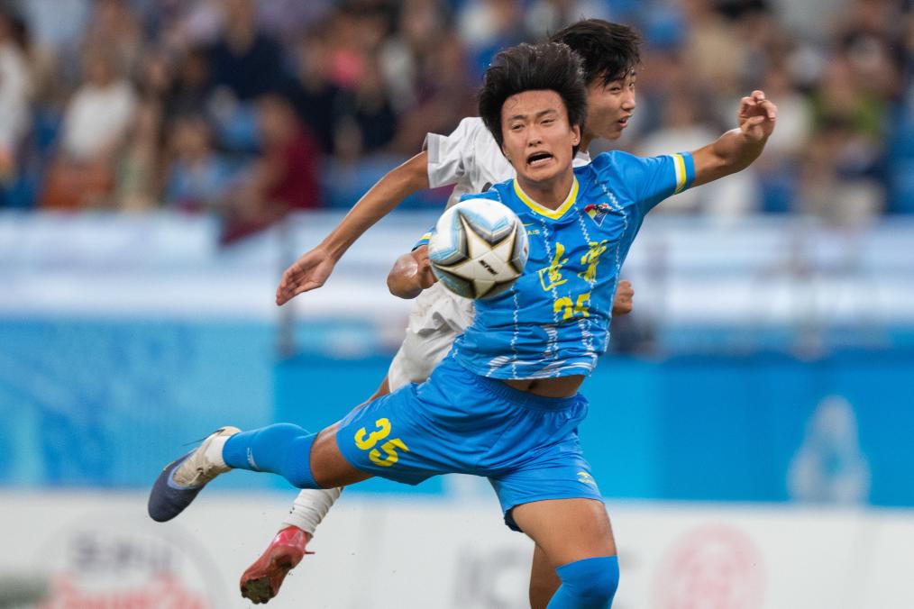 10月25日,辽宁队球员文骏(前)在比赛中拼抢。新华社记者 杜子璇 摄