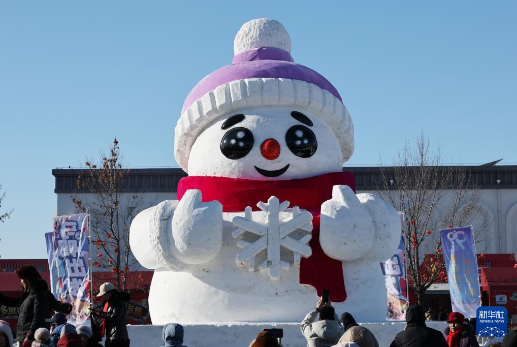 1月24日,在2026第十一届沈阳卧龙湖冬捕季活动现场,游客在冰雕前打卡拍照。