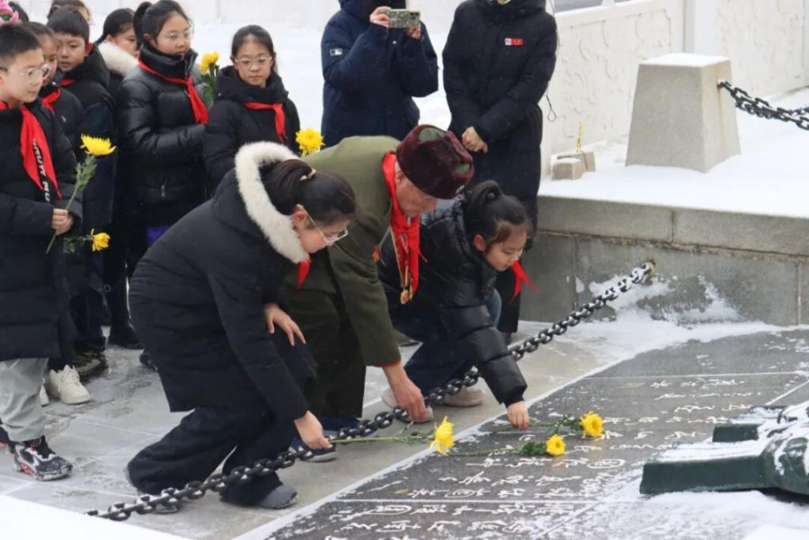 新华网沈阳1月30日电 数九寒天,沈阳抗美援朝烈士陵园,烈士墓碑前,少先队员们列队肃立,庄重举行祭扫仪式。参加活动的全体学生手持鲜花,依次缓步上前,俯身将鲜花轻轻置于墓碑基座,以最质朴的行动,向志愿军英烈致以深切缅怀与崇高敬意,现场氛围肃穆而庄重。