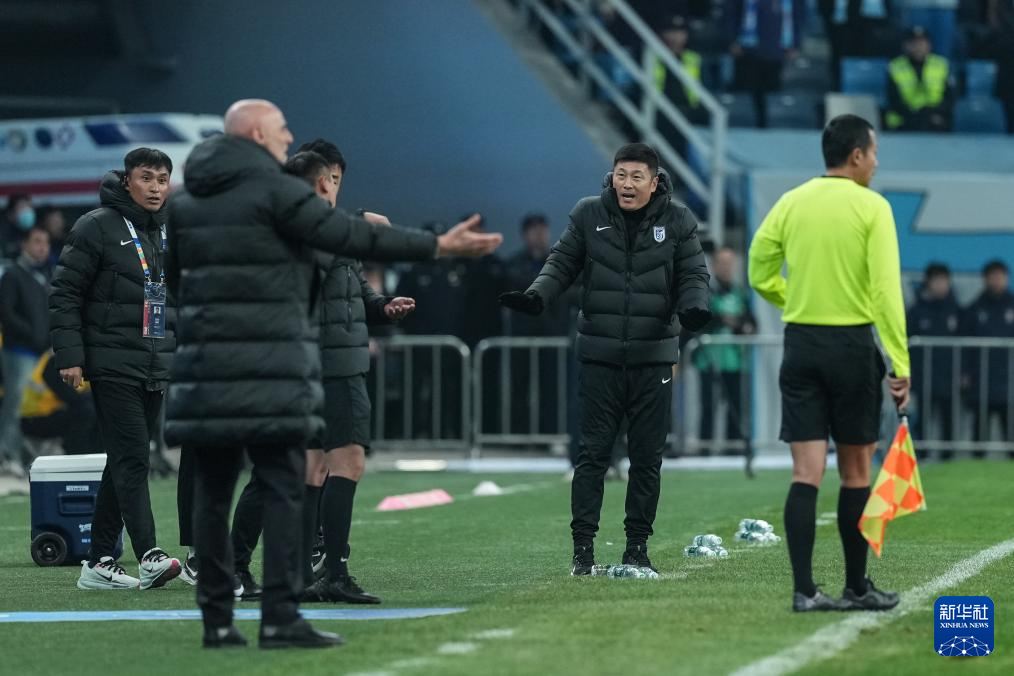 3月20日,大连英博队主教练李国旭(右二)在比赛中。