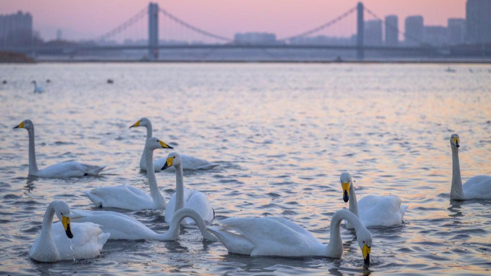 辽宁朝阳:大凌河畔 天鹅翩跹