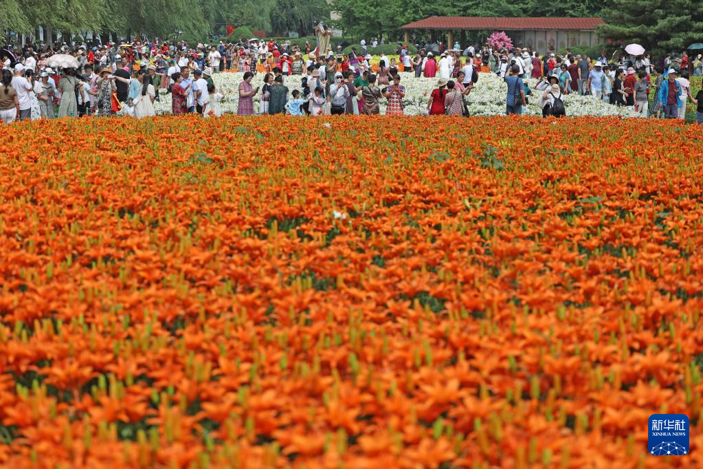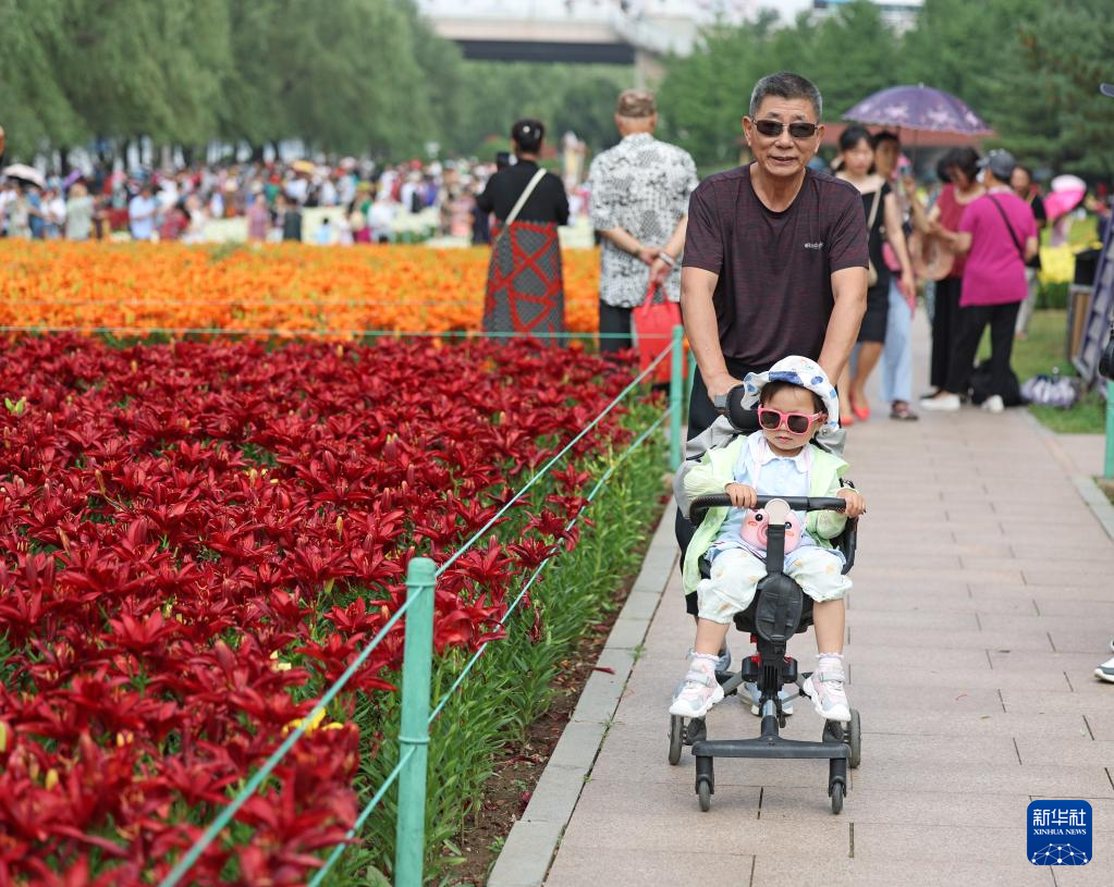 近日,在辽宁省沈阳市和平区沈水湾公园,15万株各色百合花竞相绽放,吸引人们前来游玩、拍照。pagebreak