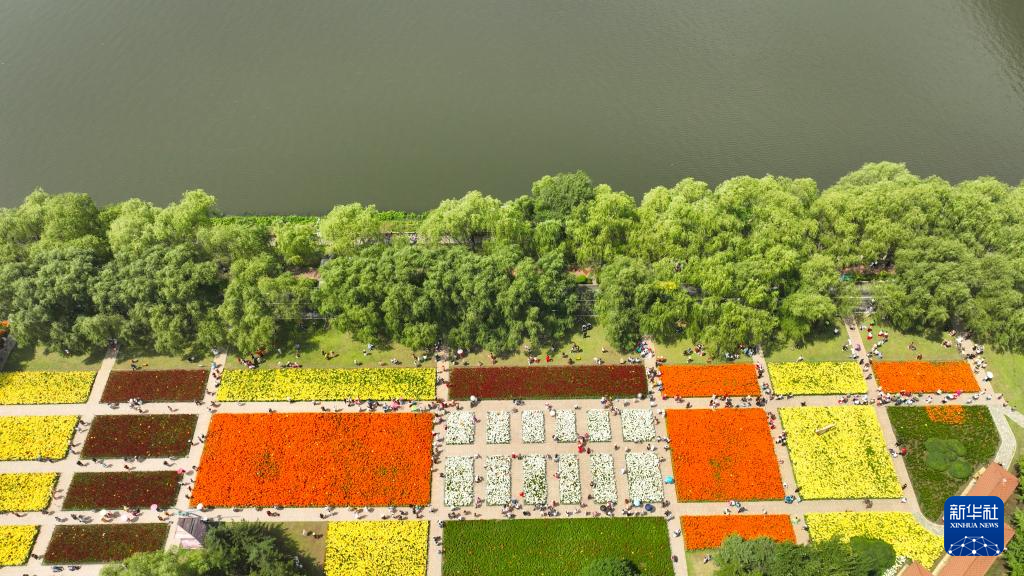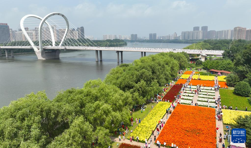 7月5日,游客在沈水湾公园游览、赏花(无人机照片)。新华社记者 杨青 摄