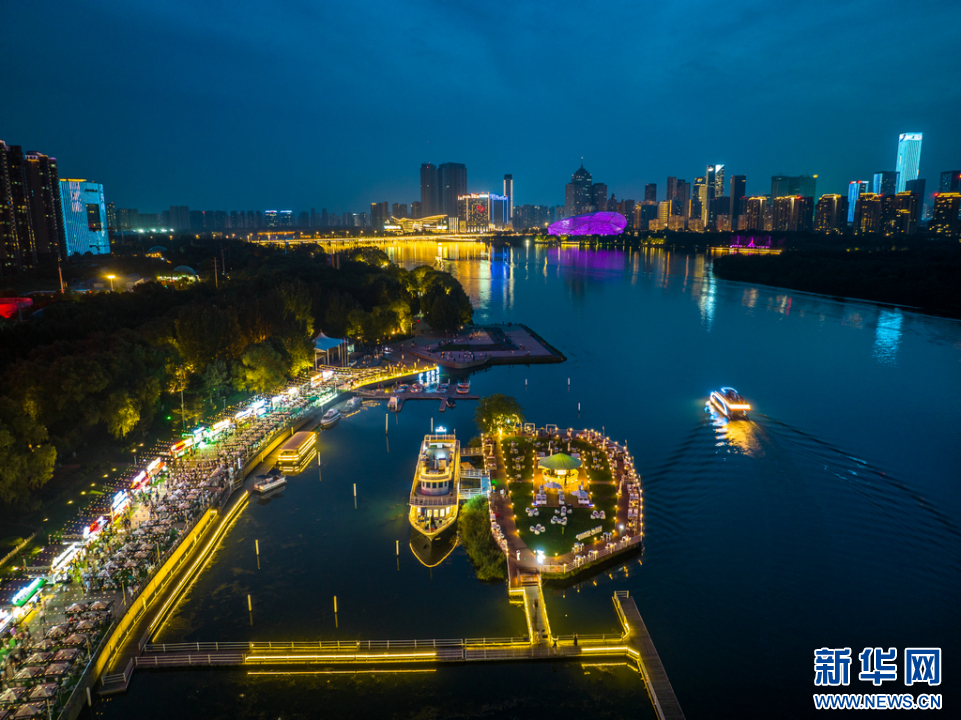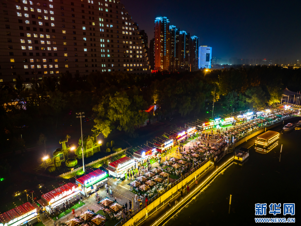 夜幕下的浑河外滩市集。(无人机拍摄)新华网发 李永宏摄pagebreak