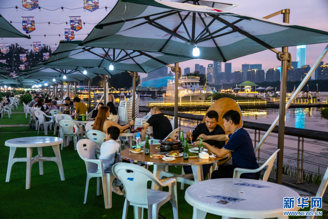 除了“逛吃”外,“浑河晚渡”也成为不少市民、游客的选择。新华网发 李永宏摄pagebreak