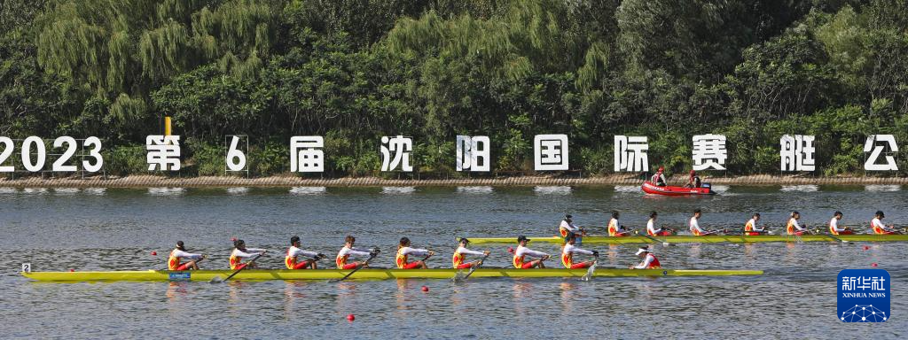 9月2日,第六届沈阳赛艇公开赛上,辽宁传媒学院赛艇队正在参加大学组男女八人单桨比赛。新华社记者 陈为 摄