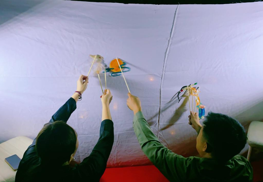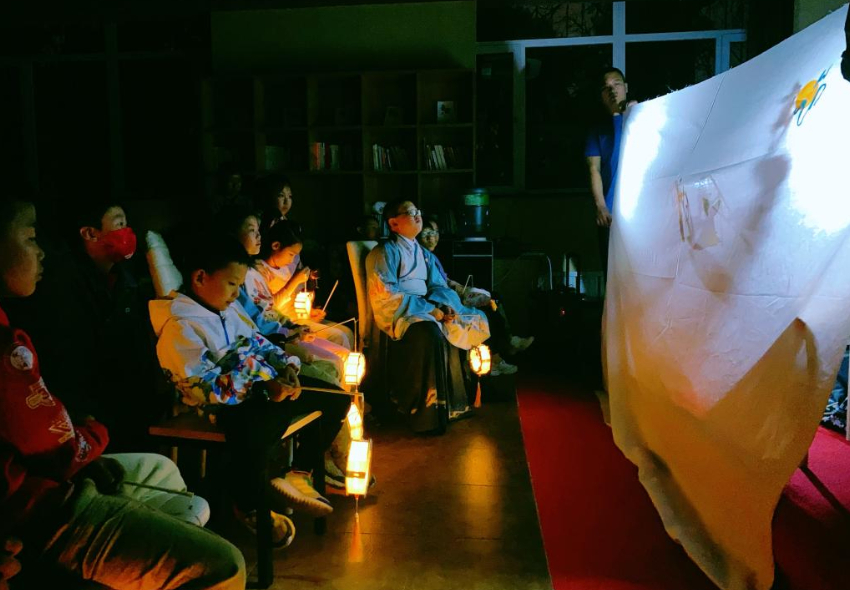 图为孩子们在进行皮影表演体验。受访单位供图