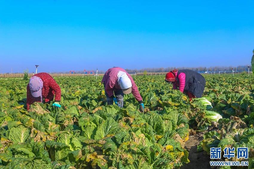 村民在田间收割大白菜。 新华网 许志康摄pagebreak