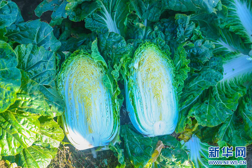 绿油油的大白菜,棵棵抱团儿,形态丰满。 新华网 许志康摄pagebreak