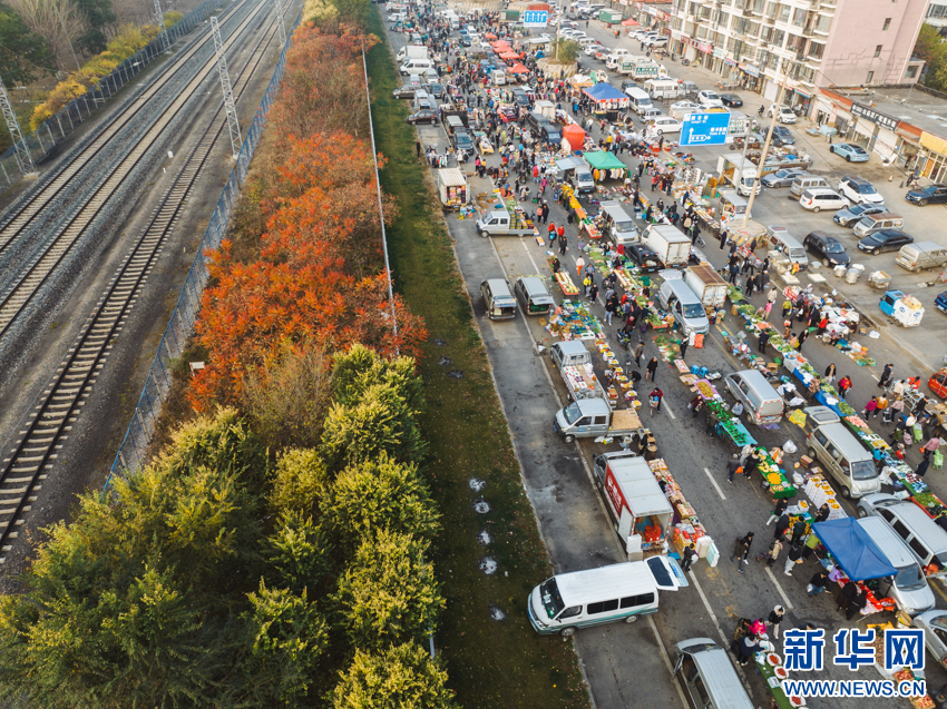 这是11月2日航拍的正大早市。新华网 许志康摄
