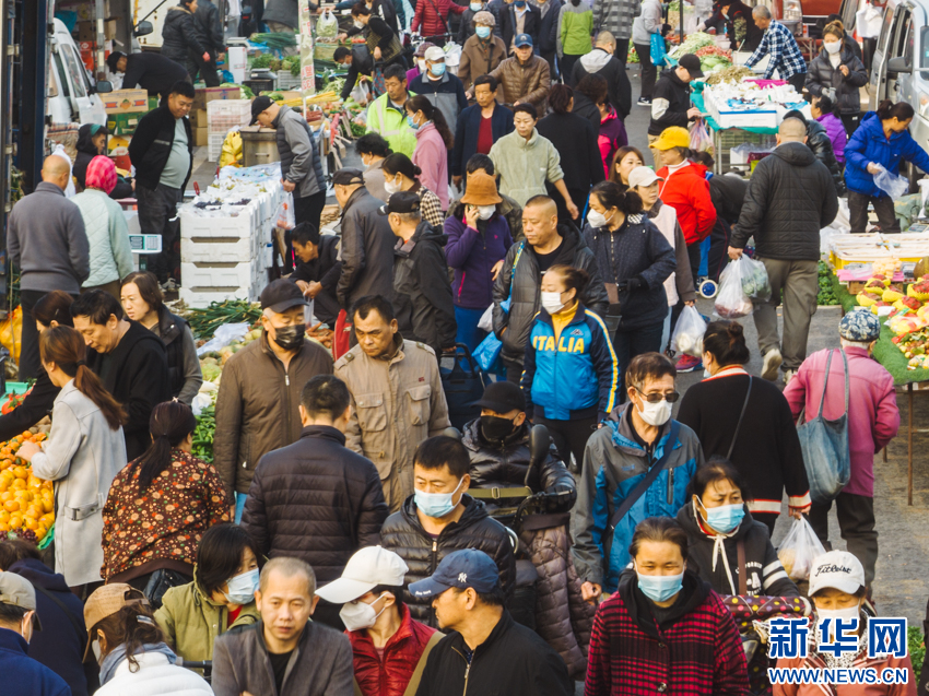 这是11月2日航拍的沈阳市浑南区正大早市。新华网许志康摄
