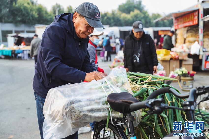 11月2日,市民在正大早市选购大葱。 新华网 许志康摄pagebreak