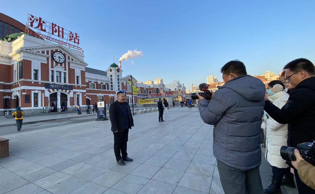 在沈阳站广场前,辽宁省政协文化和文史资料委员会办公室一级主任科员张恺新向采访团介绍了民主人士在沈阳的重要活动地点——沈阳站,以及民主人士在沈阳筹备新政协的历史。