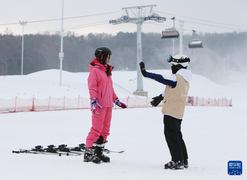11月26日,滑雪教练在沈阳市东北亚滑雪场内指导游客。新华社记者 陈为 摄