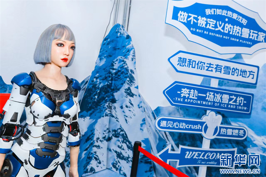 图为“辽宁冰雪市集”活动现场展出的仿生机器人。