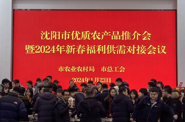 新华网沈阳1月24日电 1月23日,沈阳市总工会、沈阳市农业农村局联合举办沈阳市优质农产品推介会暨2024年新春福利供需对接会议。