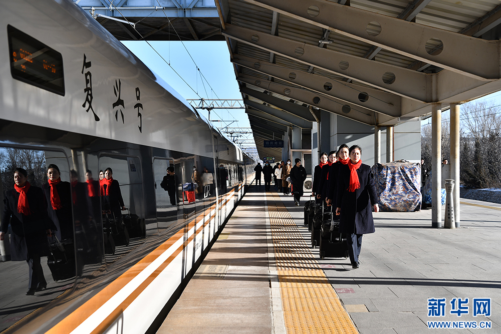 图为中国铁路沈阳局集团有限公司沈阳客运段担当乘务的沈阳北至北京朝阳G1222次动车组职工。新华网发 陈明摄
