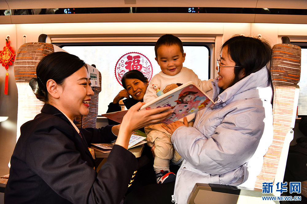 图为中国铁路沈阳局集团有限公司沈阳客运段担当乘务的沈阳北至北京朝阳G1222次动车组职工热情服务旅客。新华网发 陈明摄pagebreak