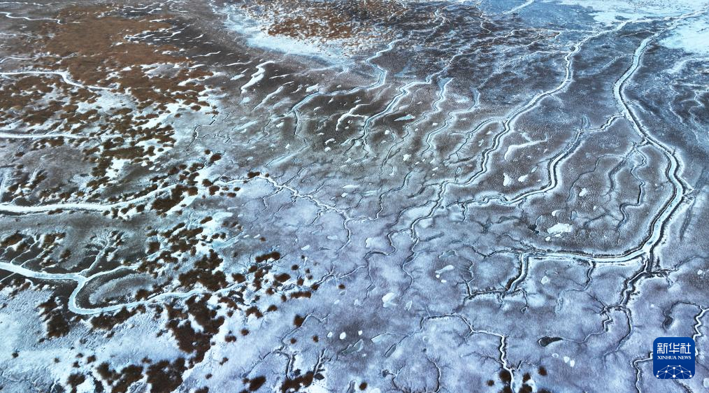 1月31日拍摄的盘锦辽河口湿地“冰脉”(无人机照片)。新华社记者 杨青 摄
