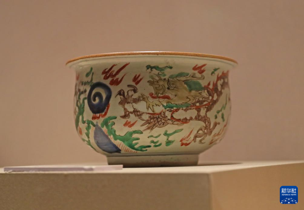 2月2日在辽宁省博物馆拍摄的五彩二龙戏珠纹香炉。新华社记者 杨青 摄pagebreak