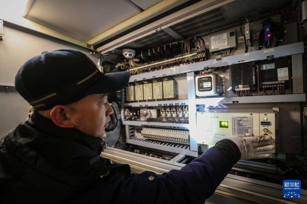2月5日,田鹤在一列普速列车内进行检修工作。新华社记者 潘昱龙 摄pagebreak