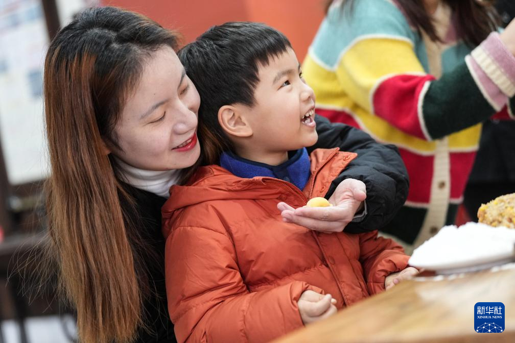 2月14日,从扬州来沈阳旅游的小朋友和妈妈体验如何包饺子。新华社记者 潘昱龙 摄pagebreak