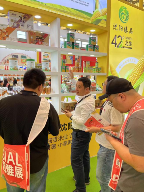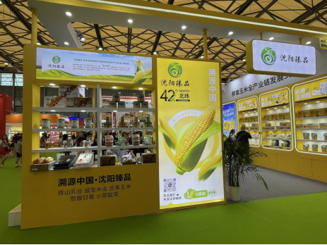 在“沈阳臻品”展区,来自辉山乳业、盛宝米业、吉美玉米、憨馥甘薯、雨谦食品等沈阳农业企业的20余种商品一一亮相,北纬42°独特的地理优势及优良的产品品质吸引国内外参展商和客商驻足洽谈。