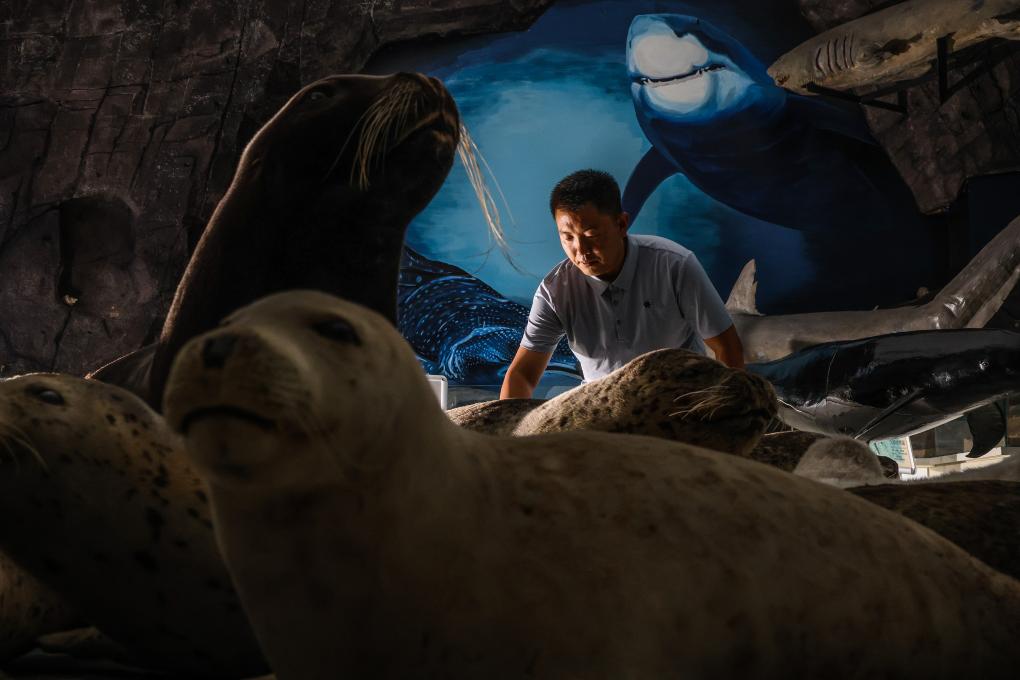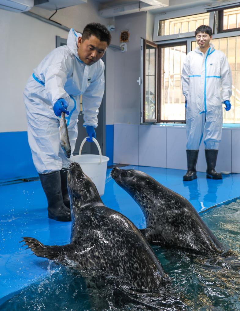 初秋的大连,天高云淡。在大连黑石礁附近的辽宁省农业科学院所属辽宁省海洋水产科学研究院(以下简称辽宁省海科院)斑海豹救助中心地下一层的水池里,5只还未康复的国家一级保护动物斑海豹畅快地游玩。