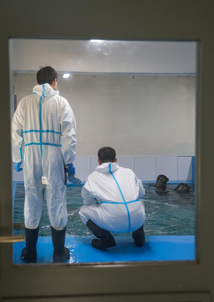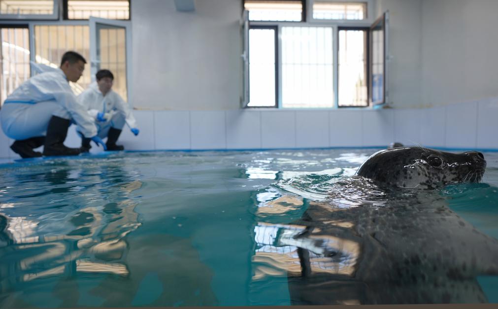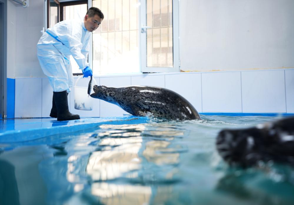 王震所在的团队有9人,他们经过一段时间开展人工授乳、食物投喂策略、疾病诊断和治疗、动物行为和健康评估等技术研究和应用,已经形成了有效的斑海豹救助流程和综合技术。从1992年至今,辽宁省海科院联合相关单位已救助斑海豹400余头,放归300余头,为斑海豹的管理和相关政策的制定提供技术支持。