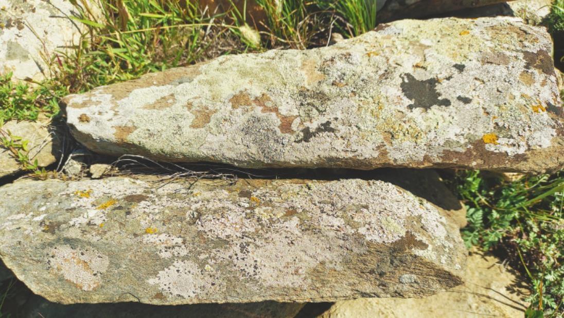虽已年深日久,留下斑斑苔痕的燕长城砌石,修筑当初的原貌依稀可辨。