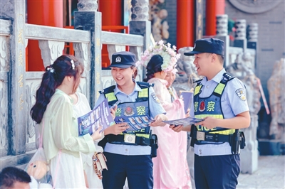 “往西走就是沈阳故宫,到中街需要往北走,中午可以尝尝沈阳特色,有老边饺子、马家烧麦……”每天在沈阳方城,民警热情地为游客指路并推介沈阳美食。目前在全市各大景区,民警、辅警化身“指路员”“导游员”,让来沈游客切实感受到沈阳公安的热情和温暖。