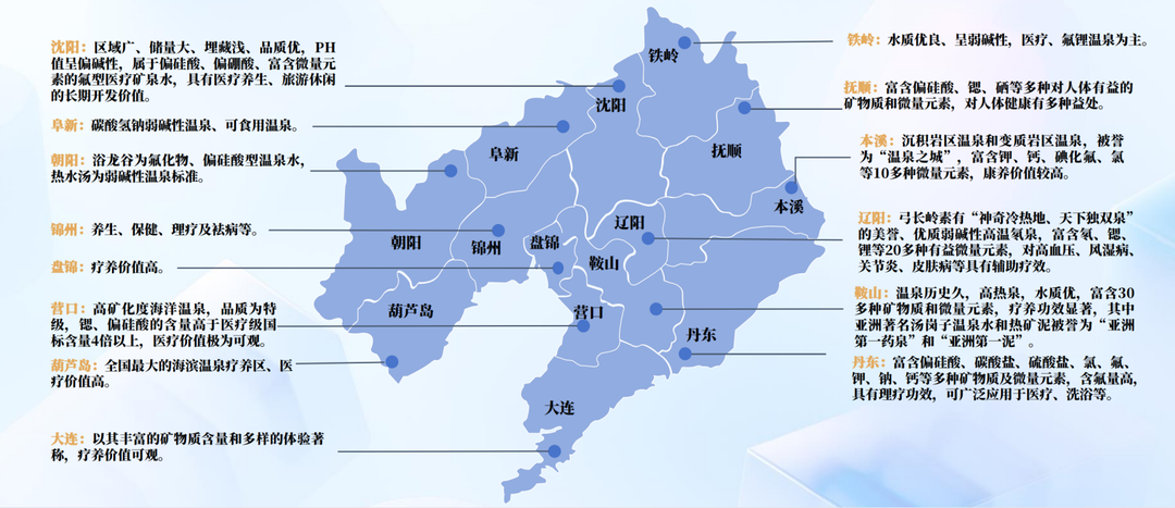 “南有广东,北有辽宁”,资源禀赋是辽宁温泉发展的底气和支撑。我省温泉不仅历史悠久,而且品质上乘。据统计,我省地热资源探明储量位居全国第八,东北首位。南北脉络的生态风景型温泉资源、东西脉络的历史文化型温泉资源与部分滨海类温泉串联起辽宁山海美景,也为游客实现“温泉自由”提供了多样化的选择。