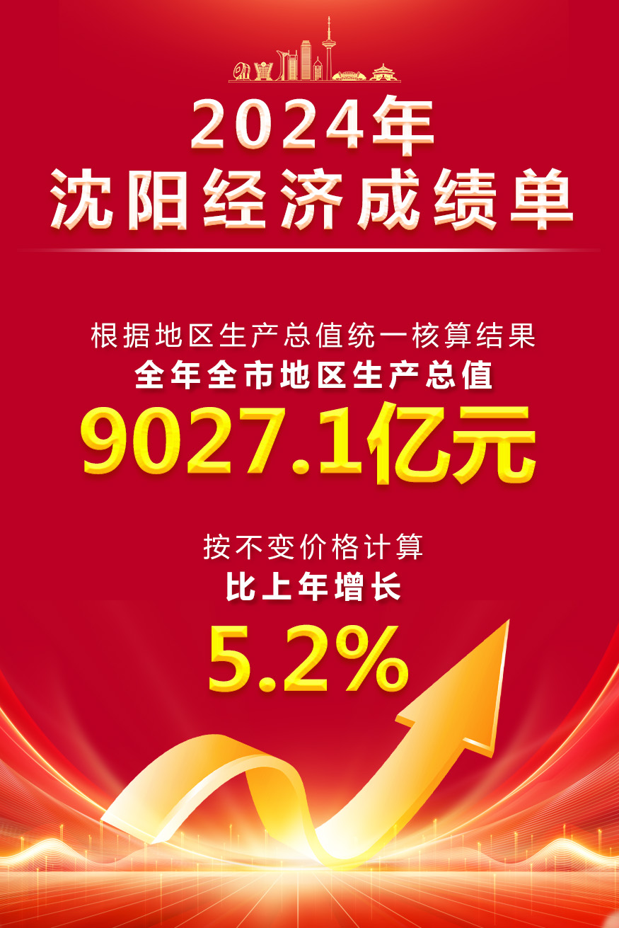 新华网沈阳1月21日电 1月20日,沈阳市政府新闻办公室召开“沈阳市2024年经济数据”新闻发布会,根据地区生产总值统一核算结果,2024年沈阳市地区生产总值9027.1亿元,按不变价格计算,比上年增长5.2%。其中,第一产业增加值329.3亿元,增长4.3%;第二产业增加值3167.5亿元,增长5%;第三产业增加值5530.3亿元,增长5.3%。