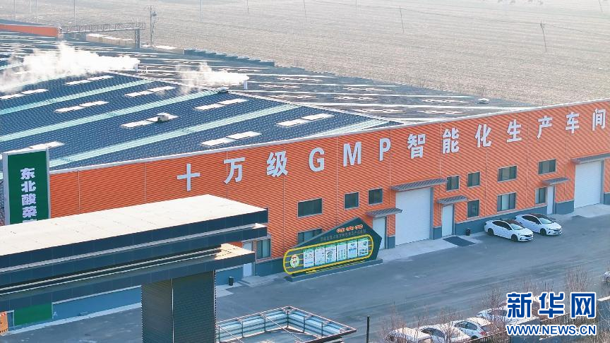 图为新民酸菜产业集群十万级GMP智能化生产车间航拍图。