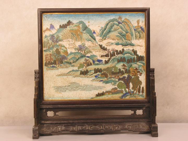 “清紫檀边座嵌珐琅山水插屏”。沈阳故宫博物院供图
