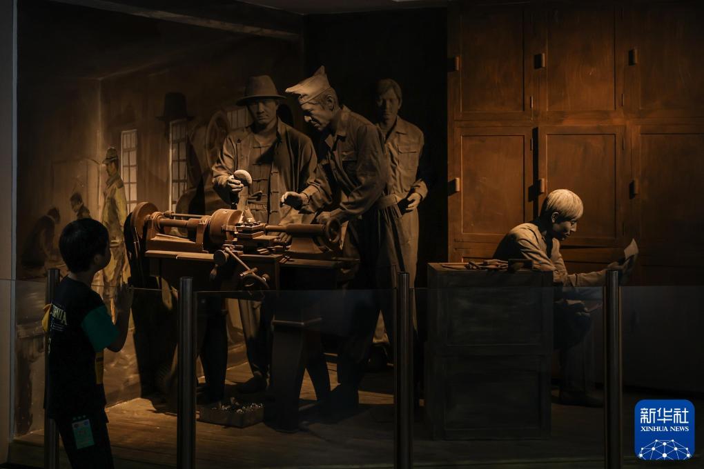 8月5日,小朋友在沈阳二战盟军战俘营旧址陈列馆内观看展品,展品所展示的内容是关于中国工友对盟军战俘的帮助。