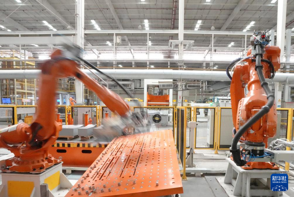 这是8月27日拍摄的沈阳新松机器人自动化股份有限公司的工业机器人生产车间。
