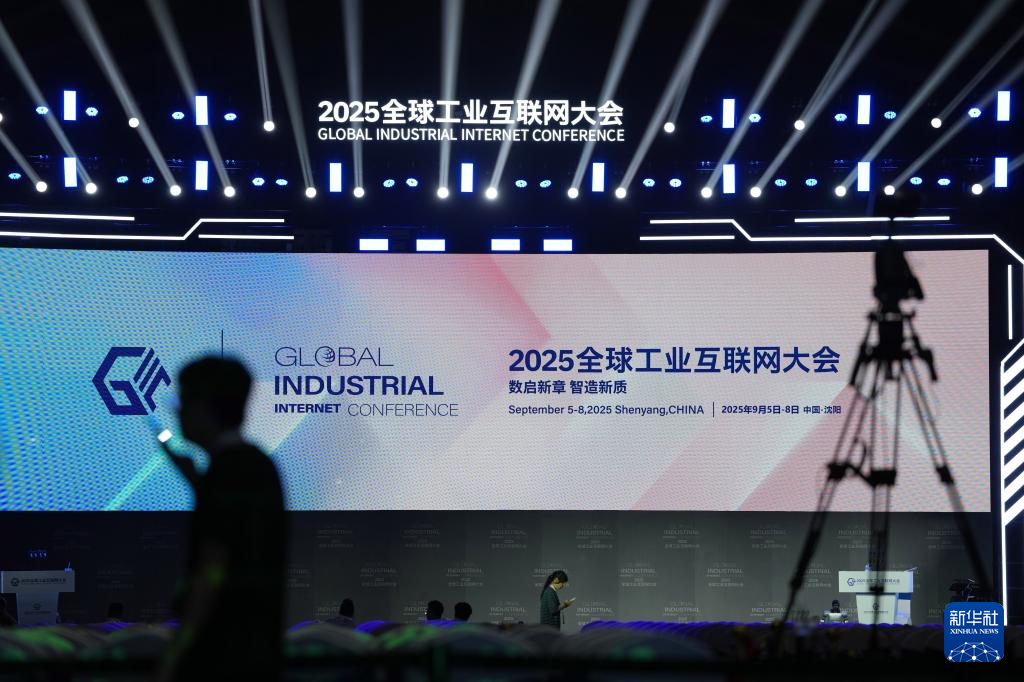 9月5日,工作人员在沈阳举行的2025全球工业互联网大会的主会场。