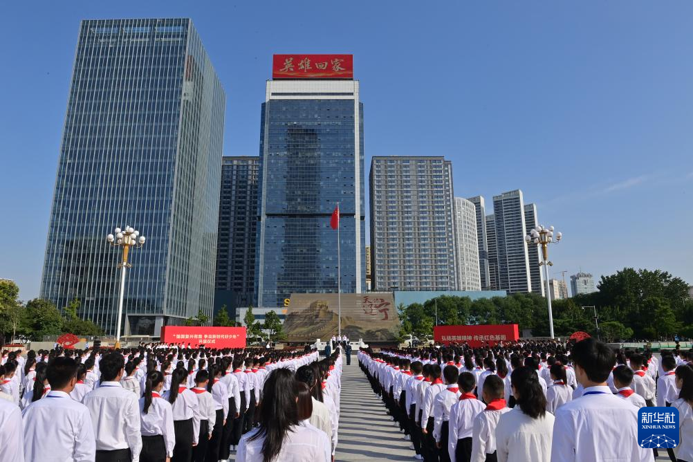 9月12日,在第十二批在韩中国人民志愿军烈士遗骸回国之际,沈阳市人民广场举行“强国复兴有我 争当新时代好青年”升旗仪式。
