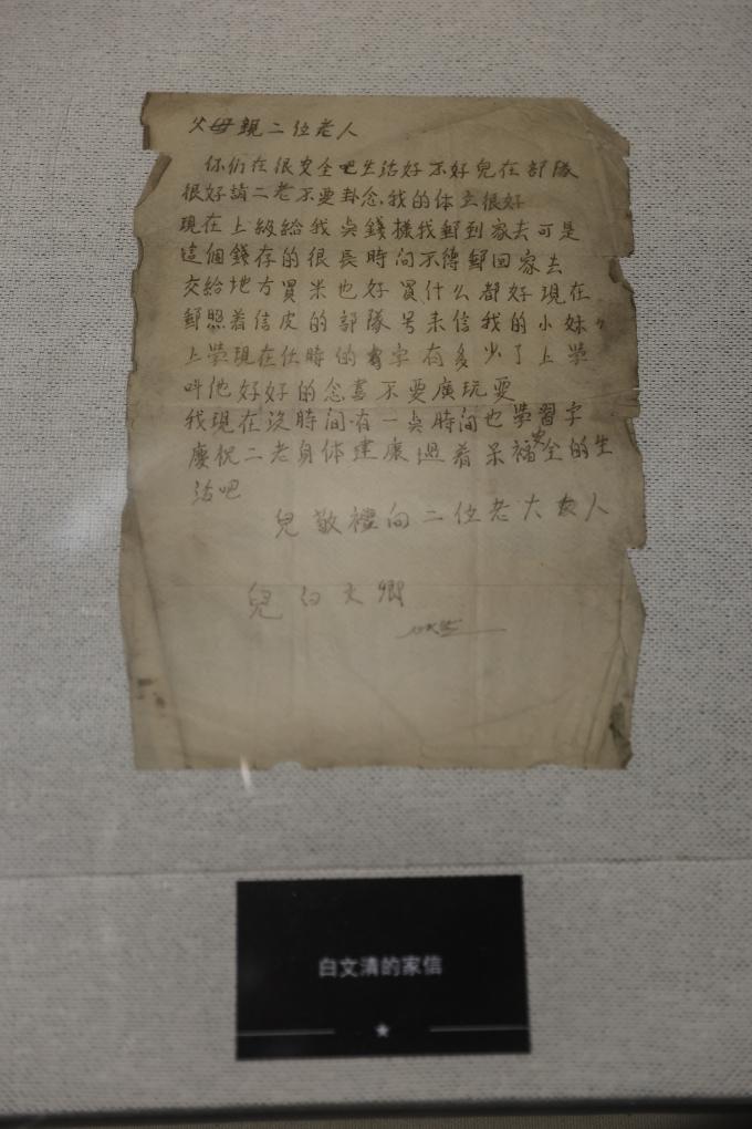 这是沈阳抗美援朝烈士陵园纪念馆内展出的志愿军战士白文清的家书(2025年9月10日摄)。 新华社记者 潘昱龙 摄
